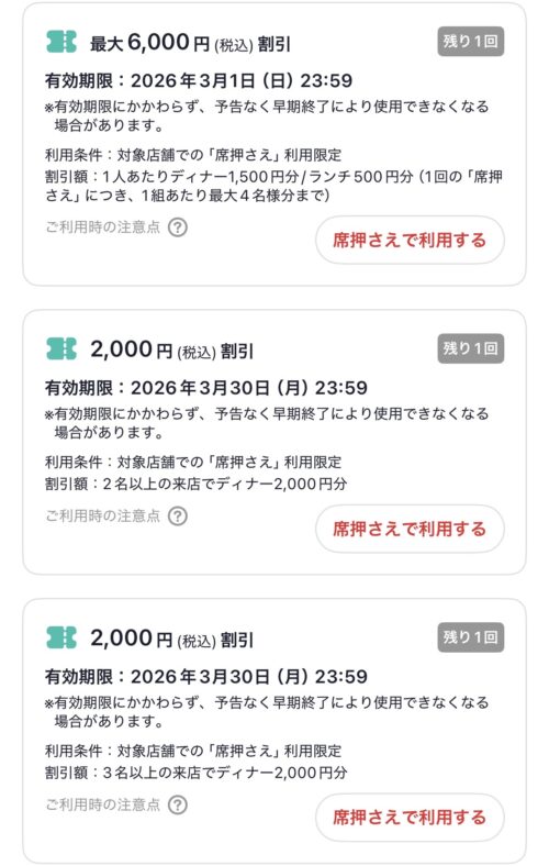 SNSで話題になっていた、ホットペッパーグルメの席押さえの割引チケット。