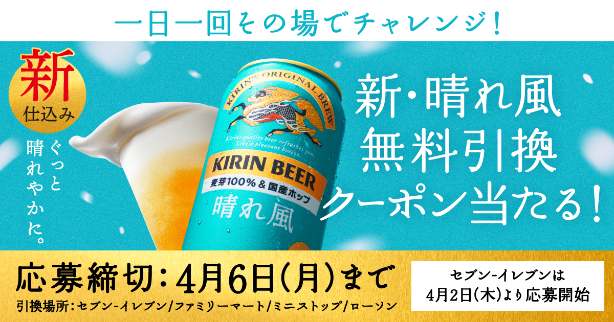 新しくなった キリン 晴れ風 コンビニ無料引換クーポン当たる!