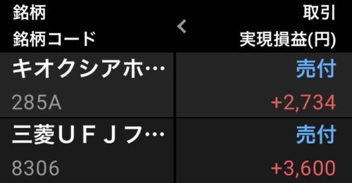 ミニ株で購入したキオクシアは5株のみ。