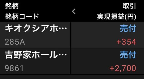 その中でも2月権利銘柄でプラ転した銘柄を売却することに。