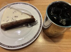 アイスコーヒーとケーキで1,010円だったので10円は楽天Pay(ポイント)で支払いました。